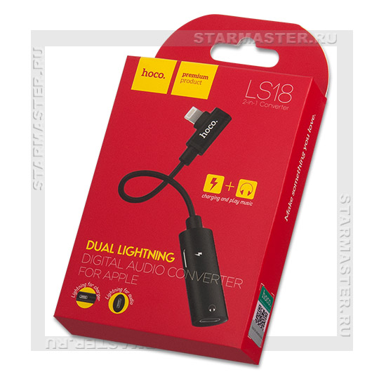 Каталог > Кабели и переходники > Кабели для Apple > Переходник для Apple 8-pin (m) - Apple 8-pin (f) x 2, HOCO LS18, черный