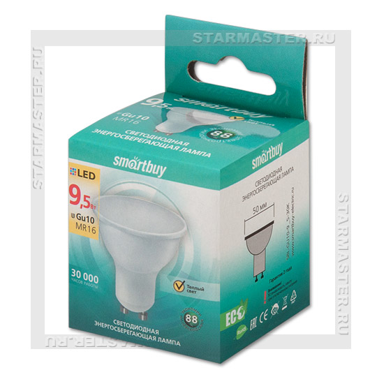 Каталог > Светотехника Светодиодная лампа GU10 9.5W ~85Вт 3000K, SmartBuy LED MR16