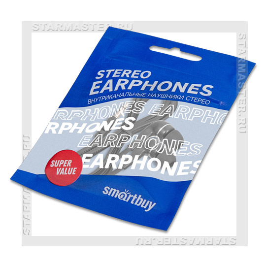Каталог > Наушники, колонки, микрофоны > Наушники-вкладыши SmartBuy A4, черный, цветной пакет