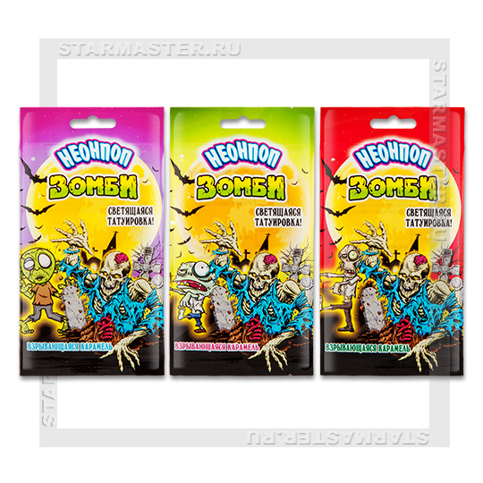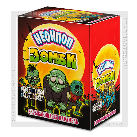Взрывная карамель Неонпоп «Зомби» со светящейся татуировкой, 1 г., 36 шт.
