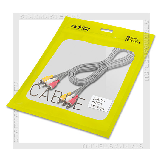Аудио-видео кабель RCA SmartBuy предназначен для передачи аналогового звукового и видеосигнала. С помощью данного AV-кабеля подключаются видеоплееры DVD и VHS, телевизоры, звукозаписывающая и звуковоспроизводящая аппаратура, которые имеют аналоговые разъемы RCA ("тюльпан").