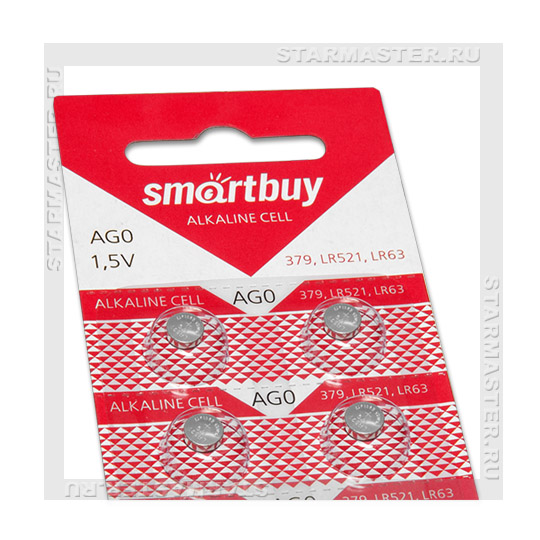Круглая марганцево-щелочная батарейка SmartBuy (AG0, 379, 521) напряжением 1.5V. Применяется в качестве автономного источника питания электронных устройств, для которых требуются элементы питания типоразмера LR63. Батарейка SmartBuy (AG0, 379, 521) используется для питания электронных часов, калькуляторов, фото-видео техники.Батарейки SmartBuy LR63 производятся на Тайване. По своим потребительским свойствам и времени работы батарейки SmartBuy являются аналогом GP, но при этом благодаря российским корням компании SmartBuy, стоимость их дешевле зарубежных аналогов.