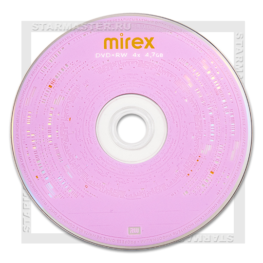 Перезаписываемые диски DVD+RW Mirex. Объем записываемой на болванку информации - до 4,7Гб (120 минут видео в DVD-формате). Болванки рассчитаны на стандартную скорость записи 4X (5.28 MB/s). Время необходимое на запись полного диска около 16 минут.