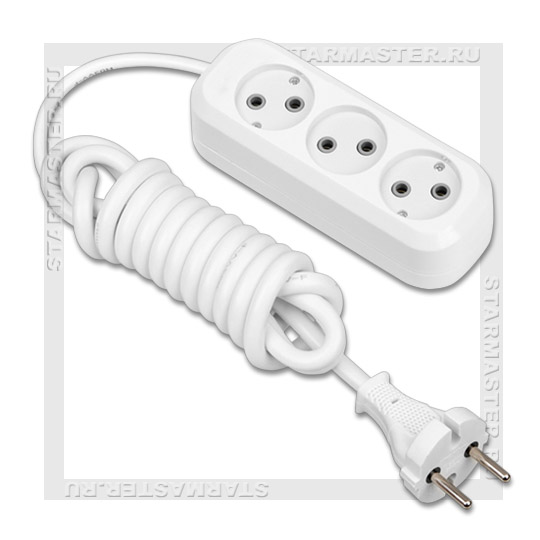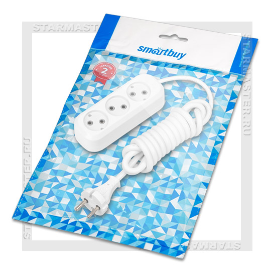 Каталог > Электрика > Удлинитель сетевой 220V SmartBuy 3 розетки, 2м без заземления, 10A ПВС 2х1,0