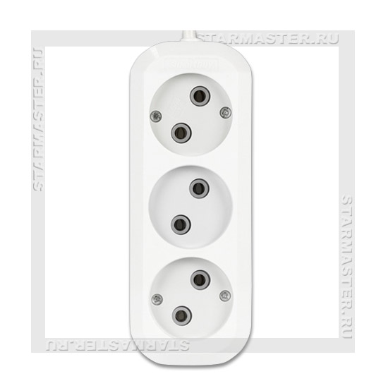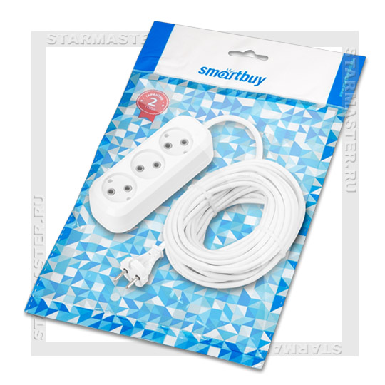 Каталог > Электрика > Сетевые фильтры и удлинители > Удлинитель сетевой 220V SmartBuy 3 розетки, 15м без заземления, 10A ПВС 2х1,0