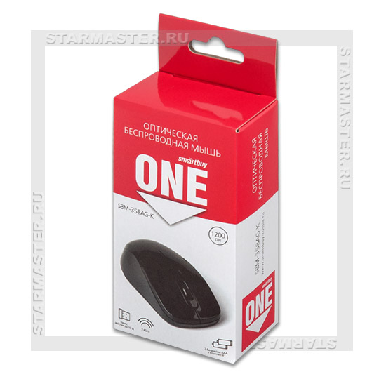 Оптическая беспроводная компьютерная мышь SmartBuy ONE 358AG. Предназначена для управления курсором на экране компьютера. Мышь подключается к компьютеру или ноутбуку посредством небольшого беспроводного модуля, который вставляется в разъем USB. Беспроводной модуль (USB нано-ресивер) автоматически определяется компьютером и не требует специальной установки драйверов.
