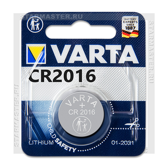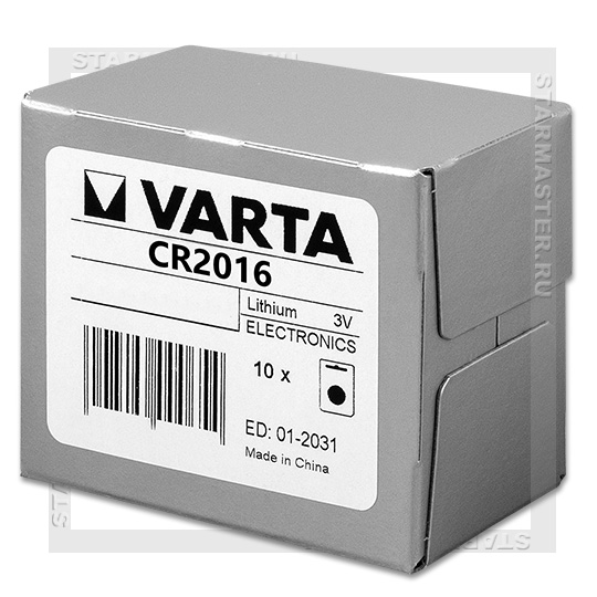 Круглая литиевая батарейка VARTA напряжением 3V. Применяется в качестве автономного источника питания электронных, электрических и электромеханических устройств, для которых требуются элементы питания типоразмера CR2016 (фототехника, электронные часы, калькуляторы, светодиодные фонарики, CMOS батареи для материнских плат компьютеров и т.д.).
